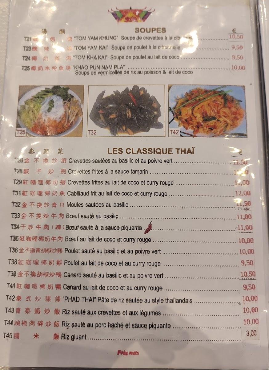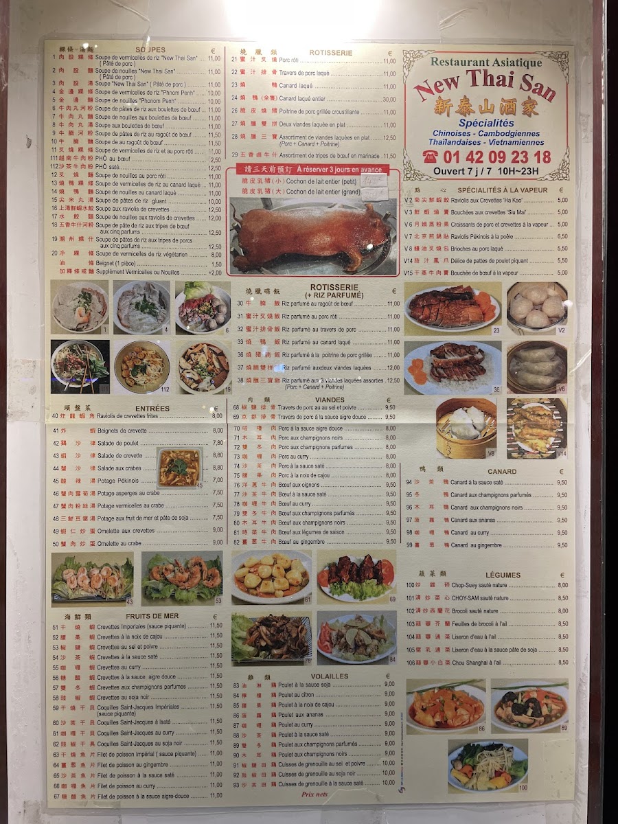 Welcome to New Thai San, a hidden gem located at 44 Rue de Torcy in Paris, where vibrant flavors of Thailand come to life. This restaurant specializes in authentic Thai cuisine, providing a delightful experience for food lovers. The menu features a variety of enticing dishes, from their succulent duck options, such as Canard Au Curry and Canard Aux Ananas, to refreshing sautéed vegetables like ChoySam Sauté Nature. Don’t miss their mouthwatering desserts, perfect for a sweet finish, including Mangue Fraîche and Perle De Coco. Customers rave about the generous portions and quick service, making it an ideal spot for a casual meal. The atmosphere is warm and welcoming, ensuring a pleasant dining experience. Whether you're a fan of traditional Thai meals or eager to try something new, New Thai San promises flavors that resonate long after your last bite.